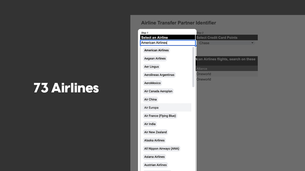 - Determine the transfer partners to search based on the selected credit card points currency and airline alliance